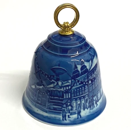 1993 Bing & Grondahl Christmas bell, designed by Jørgen Nielsen, shows Father Christmas talking to some children. The title of the bell is ‘Father Christmas in Copenhagen’ and the technique used for the bell is underglaze.