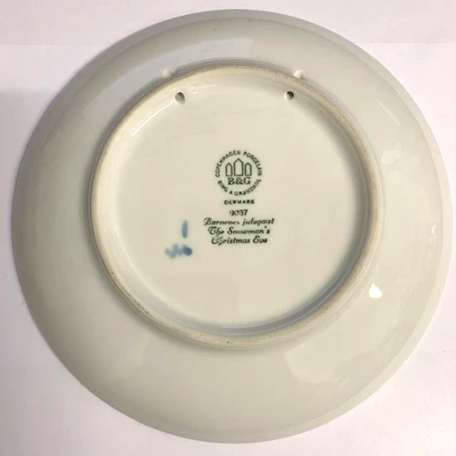 Edvard Jensen, who designed 1987 Bing & Grondahl Christmas plate, chose the title ‘The Snowman’s Christmas Eve’ as the title of the plate.