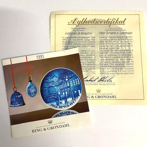 1993 Bing & Grondahl Christmas plate, designed by Jorgen Nielsen, depicts Santa on ‘Amager Square’.