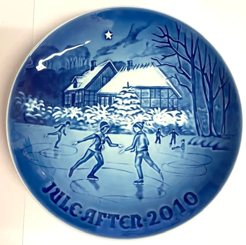 2010 Bing & Grondahl Christmas plate, designed by Jørgen Nielsen, is titled ‘Ice dancing on the lake’.