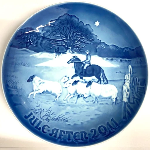 The plate depicts a farmer herding his sheep into the barn – when all animals are well in the stable the peace of Christmas can truly descend.
