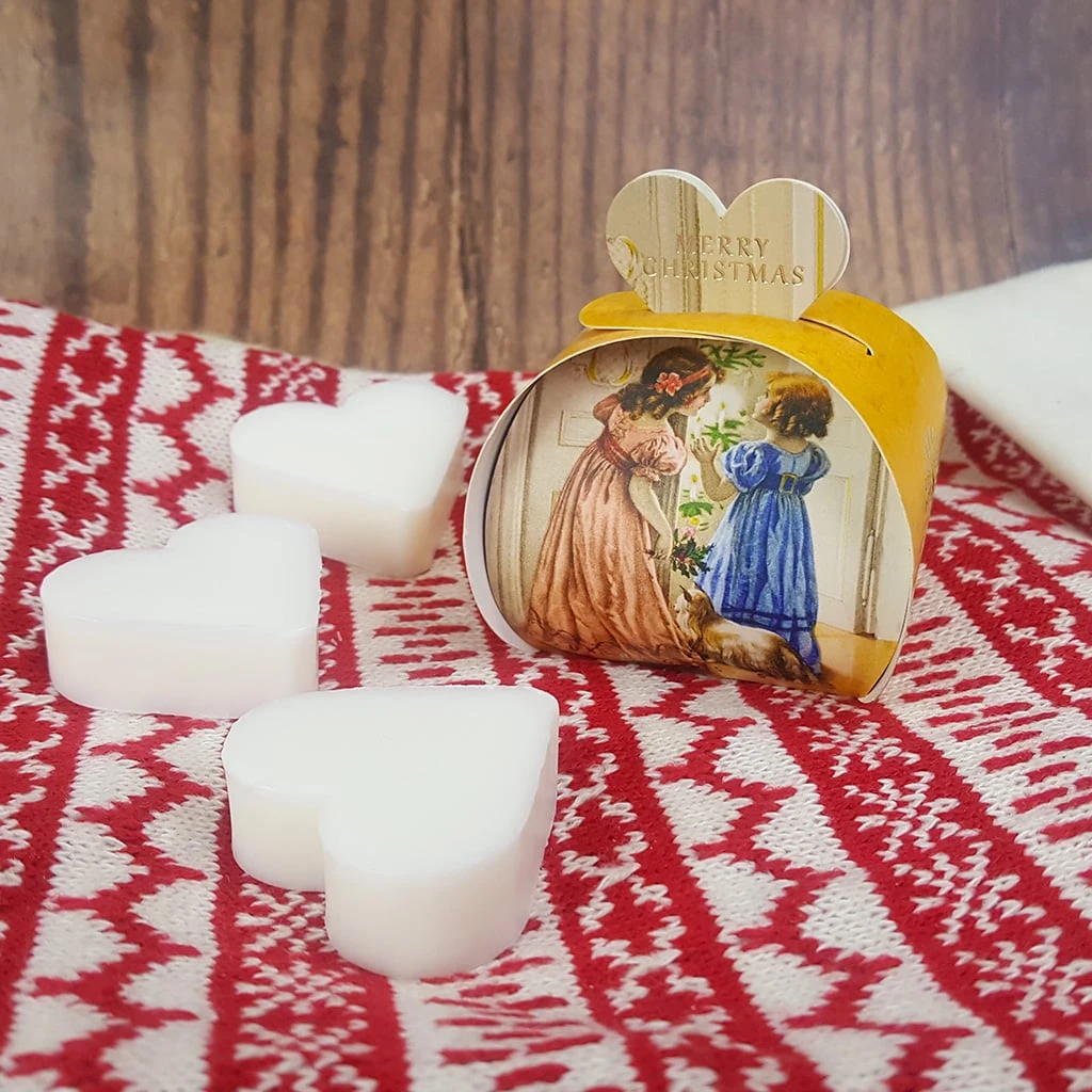 The Victorian Christmas Guest Soaps contain three perfectly packaged heart-shaped soap bars, perfectly packaged in a beautifully illustrated gift box. Enriched with moisturising shea butter, the Victorian Christmas scented soaps have a spiced plum and honeysuckle perfume with warm notes of seasonal spices and sweet fruits. Top notes of magnolia, jasmine and honeysuckle complement the rich plum scent. A fresh delicate Christmas fragrance with a floral twist.