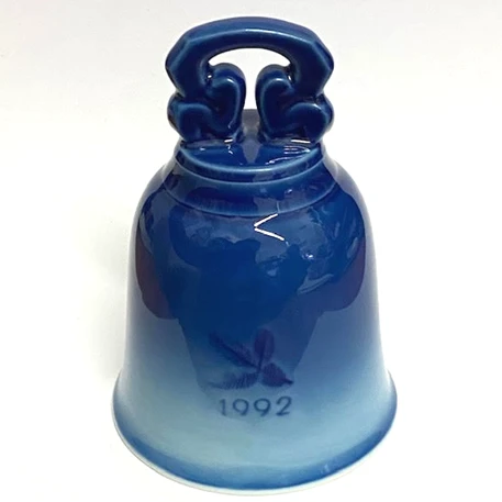This 1992 Royal Copenhagen Christmas bell has the same motif as the 1992 Royal Copenhagen Christmas plate, drop and cup.