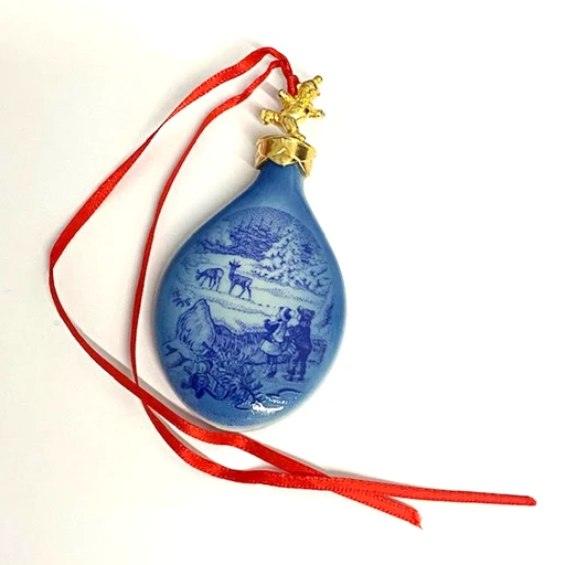 2002 Royal Copenhagen Christmas drop ornament has the title ‘Winter in the forest’.