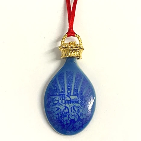 This Royal Copenhagen Christmas drop ornament was designed by Sven Vestergaard and decorated under the glaze.