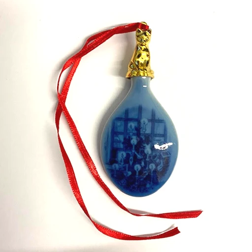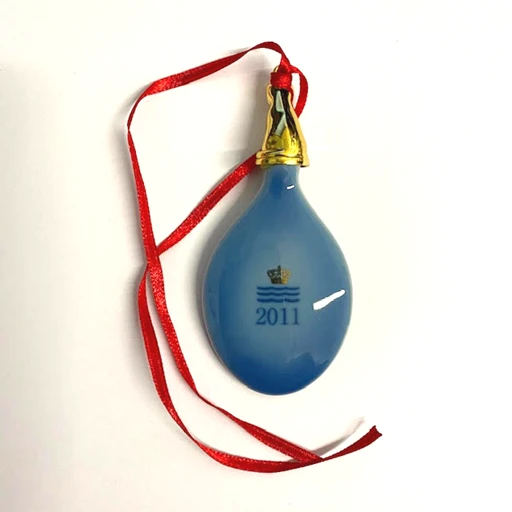 This Royal Copenhagen Christmas drop ornament was designed by Sven Vestergaard and decorated under the glaze.