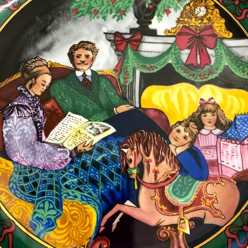 Royal Copenhagen started this Christmas in Denmark series in 1991 and ended it in 1996. The philosophy of making the Christmas plates in this series was to created a Christmas plate which had more modern expression in colours and motifs than the highly appreciated blue Christmas plates. The motifs of the six beautiful Christmas plates in the Royal Copenhagen Christmas in Denmark series has all been inspired by a Danish family’s Christmas at the turn of the century. The technique used for this plate was serigraphy.