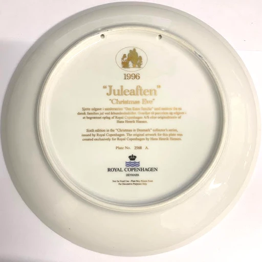 The motifs of the six beautiful Christmas plates in the Royal Copenhagen Christmas in Denmark series has all been inspired by a Danish family’s Christmas at the turn of the century. The technique used for this plate was serigraphy.