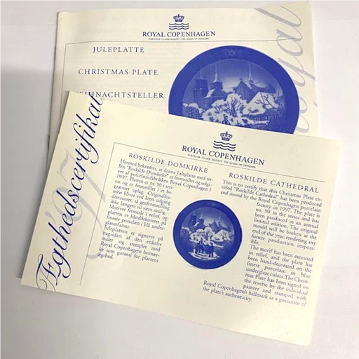 1997 Royal Copenhagen Christmas plate, designed by Svens Vestergaard, has the title ‘Roskilde Cathedral’.