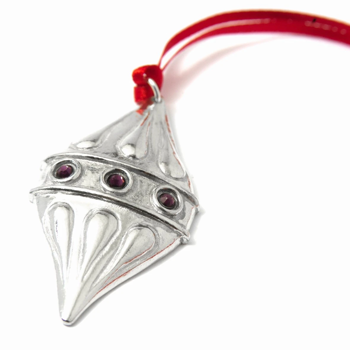 2014’s Christmas decoration is a striking, handcrafted Christmas bauble. Comes with a red satin ribbon. Made from pure Cornish tin, this is the perfect gift for family and friends or even just as a treat for yourself!