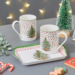 Embrace the festive spirit with this sweet ornament of a mischievous kitten playing with a Spode Christmas Tree bauble. With a sweet expression and dressed in a stripey red hat and green bow, this kitten decoration is a delightful addition to your tree. A gold string and red bow finish the ceramic ornament so it can be easily hung. Treat yourself or surprise someone special this Christmas.